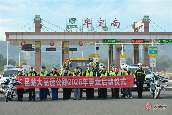 云南网讯(记者 彭锡 通讯员 吕骏)近日,楚大公司联动公安交管、综合执法等多家单位,在牟定南收费站举行G5621楚大高速公路2026年春运启动仪式,标志着这条连接滇西八州市与省会昆明的交通大动脉,正式进入为期40天的春运保障攻坚阶段。楚大公司紧扣“平安春运、便捷春运、温馨春运”目标,全方位构筑春运安全服务体系,守护群众出行路。