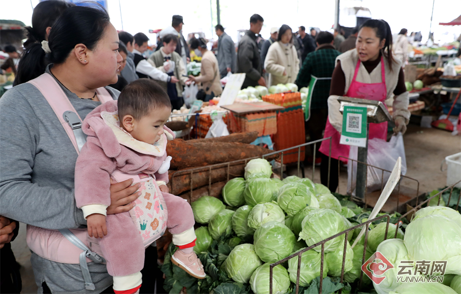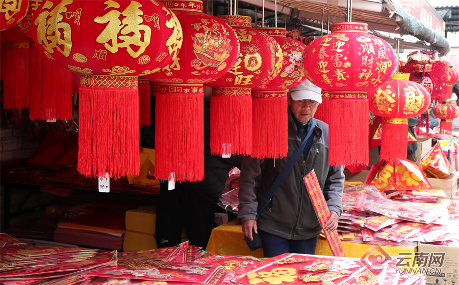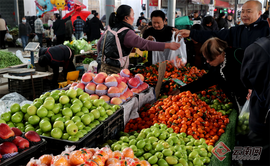 春节临近,云南各地市场物资供应充足,价格稳定,有力保障节日“菜篮子”需求,让年味更浓、民心更暖。在玉溪市红塔区李棋综合农贸市场,供应节日市场的蔬菜水果禽肉蛋等商品琳琅满目,传统节庆饰品挂满摊位,红灯笼、春联等年货热销,洋溢着浓浓的节日氛围,前来采购年货的市民络绎不绝。