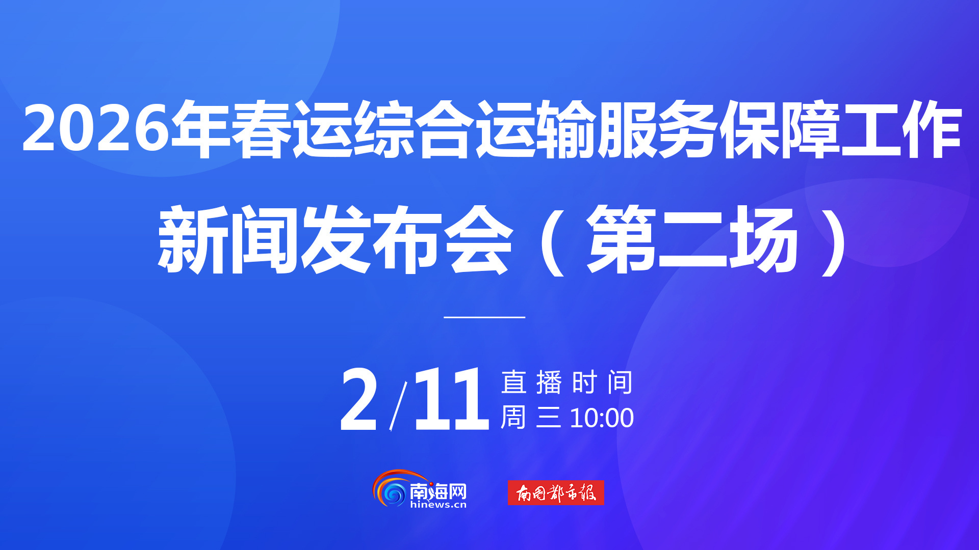 直播预告 | 2026年海南春运综合运输服务保障工作最新进展,请关注11日这场新闻发布会