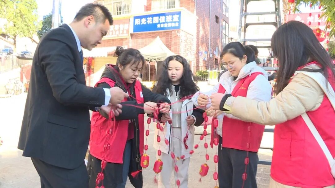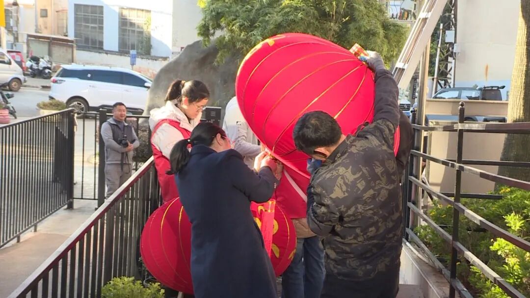 安装现场,社区志愿者与物业工作人员忙碌不停。一串串红灯笼、一组组绚丽彩灯依次点亮,流光溢彩、暖意融融,为小区院落披上了节日盛装,处处洋溢着浓浓的新春气息。