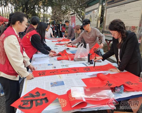 法治护航成为新春活动的重要亮点。福源社区联合多家单位在集市开展普法宣传,书法爱好者书写兼具法治内涵与新春祝福的春联,工作人员通过宣讲、答疑等方式普及法律、反诈等知识,还开展“送法入商户”服务,发放宣传册300余份。澜湄社区同步开展普法送福活动,发放春联、福字260余份及各类普法资料200余份,用“家常话”讲解防骗知识,获得居民广泛认可。