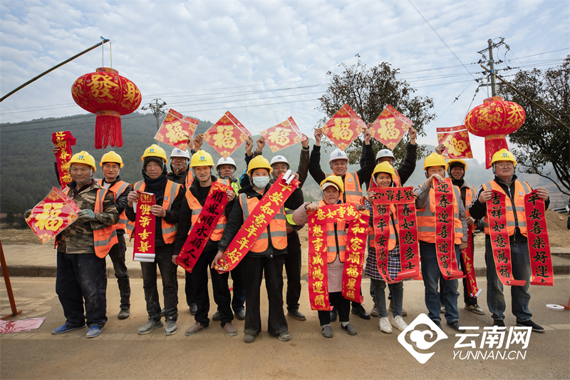 不止嵩明项目,春节前夕,中建二局云南分公司统筹开展跨区域家属慰问,为玉溪、红河、昭通等地坚守一线的工友家属,统一邮寄新春礼包、手写感谢信与吉祥福字,把关怀与敬意送到建设者家中。信件里细数工友担当、致谢家属支持,礼包承载年味与牵挂,跨越山海传递央企温情,让家属放心、工友安心。