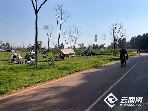 绿道串起“露营+”,春城旅游从单一住宿到多元体验。随着108公里滇池绿道的全面开放,昆明的近郊露营不再是单一的“住帐篷”,而是演变为一种“露营+”的复合型休闲方式。