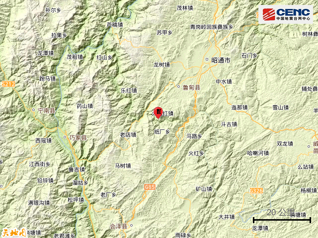 周边县城:震中距鲁甸县22公里、距昭阳区43公里、距巧家县53公里、距会泽县68公里、距四川宁南县70公里,距昭通市45公里,距昆明市231公里。