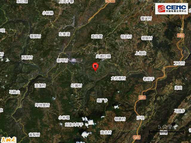 附近村镇:本次地震周边5公里内的村庄有鱼塘坪子、水槽沟、鹦哥咀、松林头、马垭口、银厂村、红石岩村、莫家沟、高家村、刘家院子,20公里内的乡镇有火德红镇、包谷垴乡、大水井乡、老店镇、江底镇、龙头山镇。