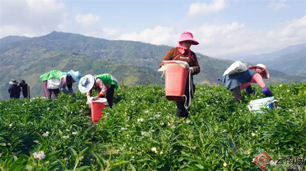 云南网讯(记者 赵岗 通讯员 李裕梅 李红戟)马年春节期间,云南省红河哈尼族彝族自治州绿春县平河镇8000亩人参果种植基地里,一派热火朝天的丰收图景呈现眼前。