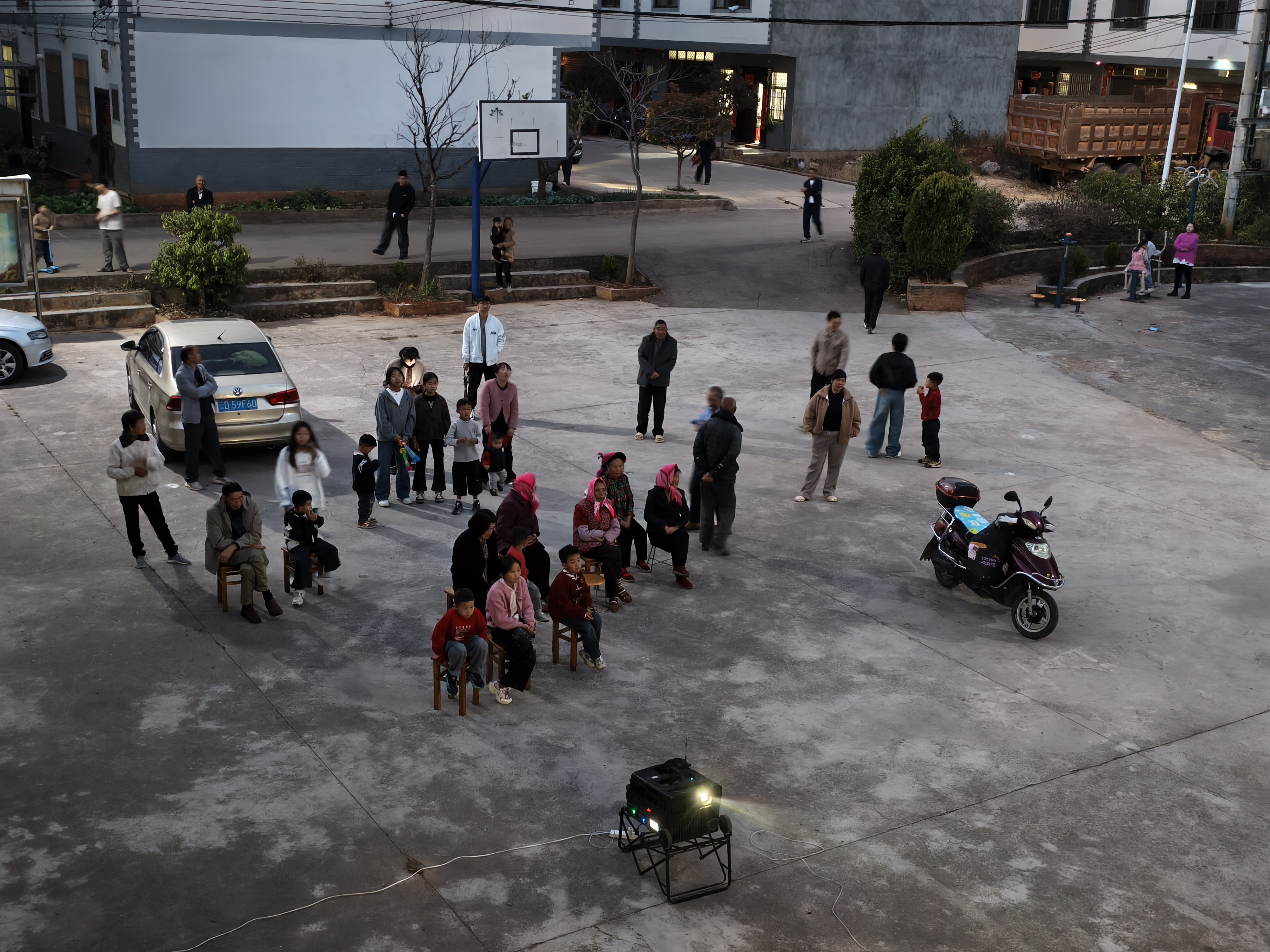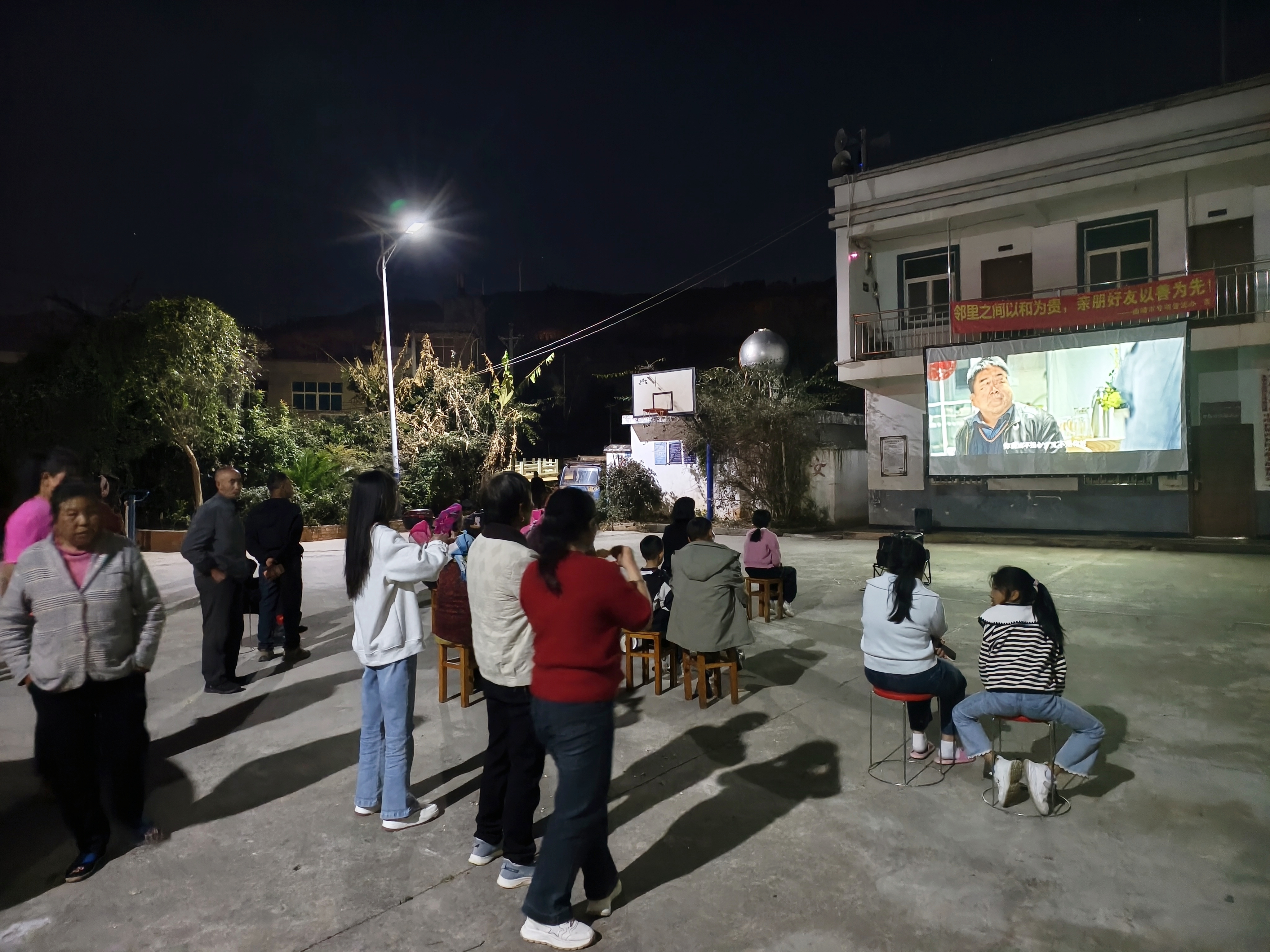 夜幕降临,华灯初上。在联合青龙村委会、珠街街道涌泉红军广场、中所村杨家坝村民小组的文化广场上,一块幕布、一台放映机、一个音响,简简单单的配置,却点亮了乡村的夜空,也聚拢了隔壁邻里的人气。