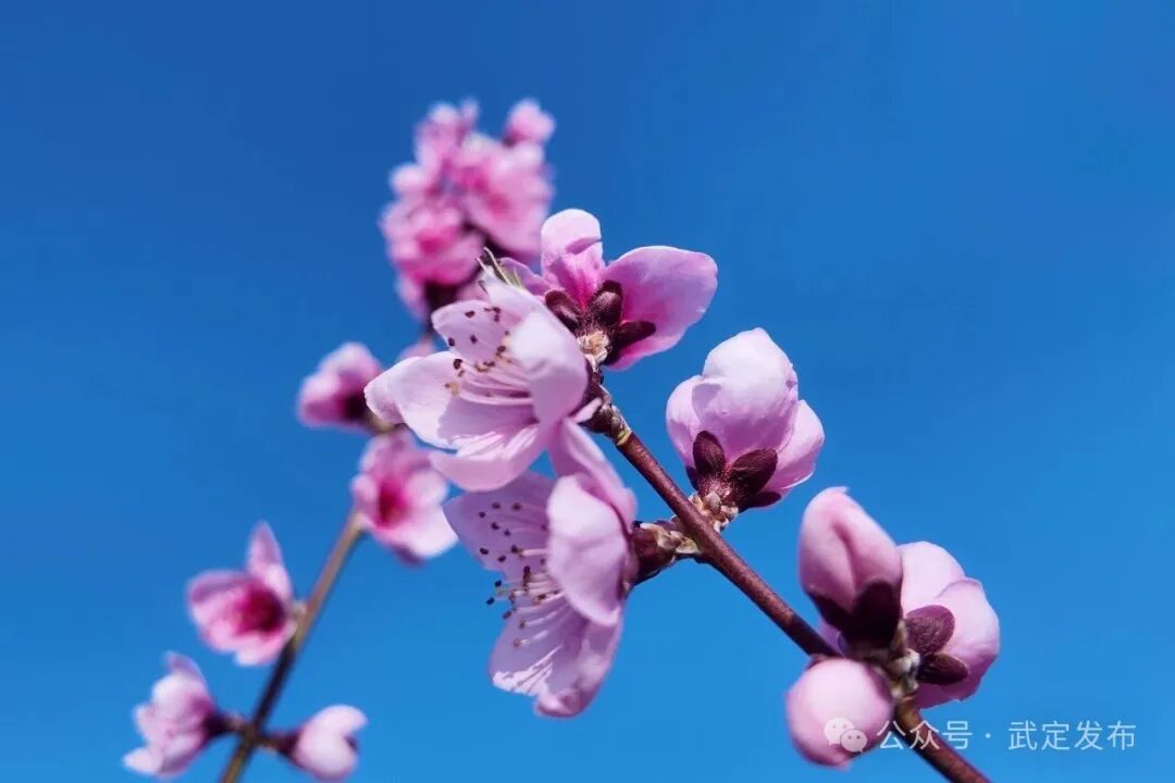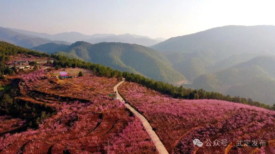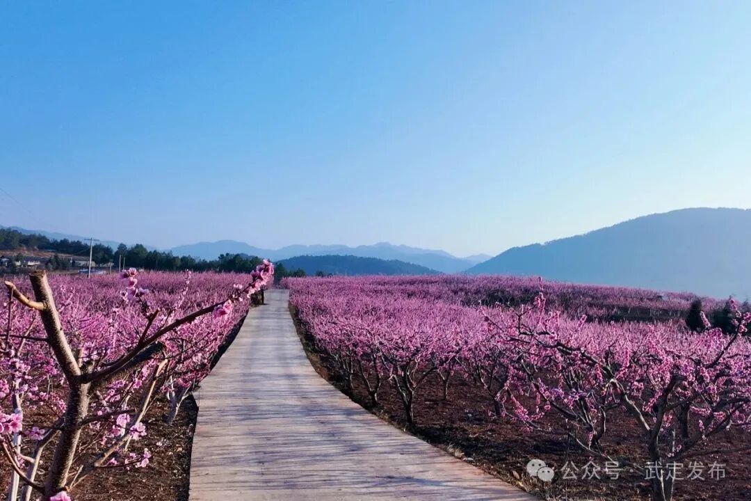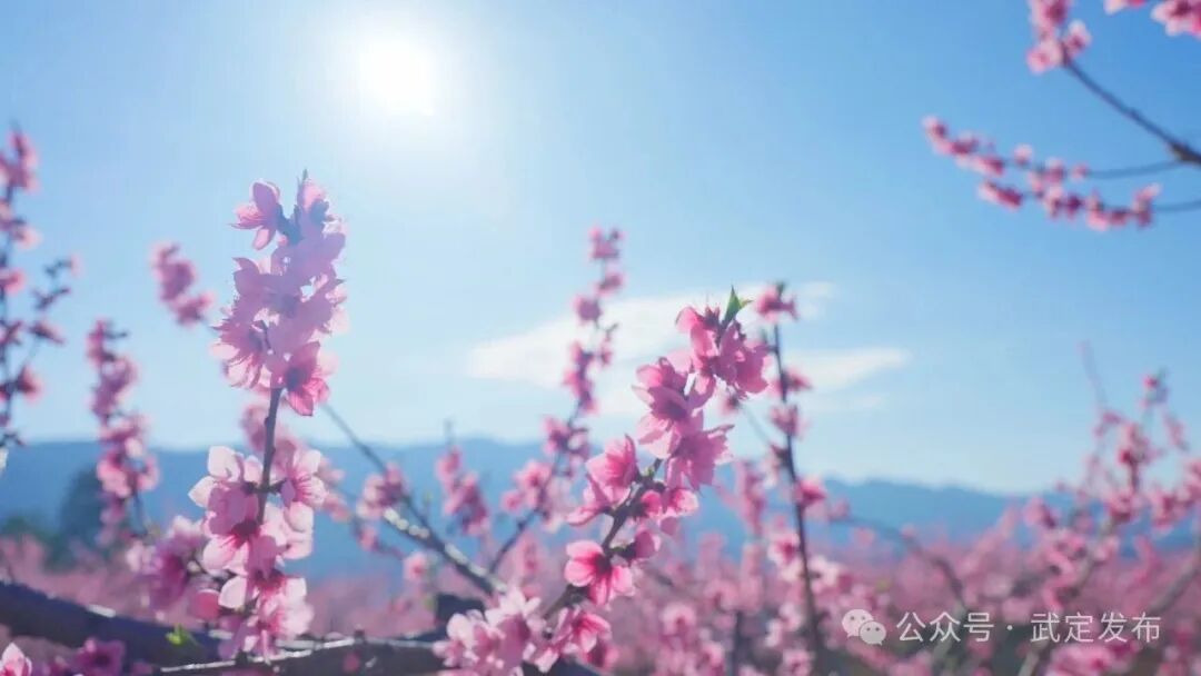 春日时节,武定县发窝乡代家村500亩、2万余株冬桃迎春绽放,粉白花瓣缀满枝头,与蓝天青山、彝家民居相映成趣,勾勒出一幅和谐秀美的春日画卷,每一缕花香都诉说着春日的浪漫。