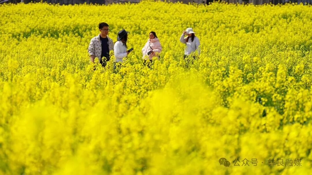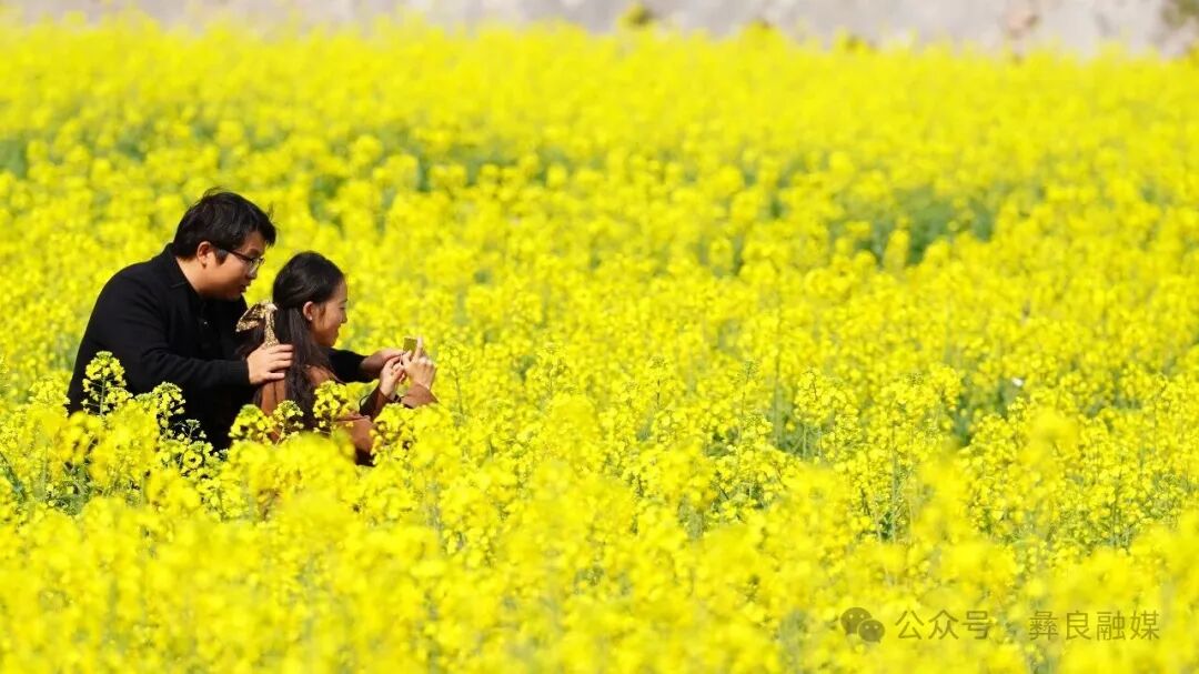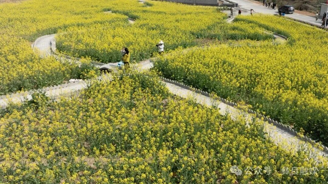 初春时节,彝良海子镇丰收路油菜花田的油菜花竞相绽放,金黄花海与远山村落相映成趣,美不胜收,盎然春意吸引游客穿梭花间小道赏花打卡、拍照留念,尽享春日好时光。