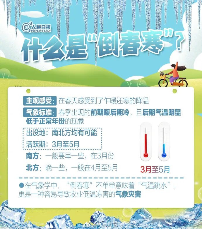 预计春季(3-5月)气温:昭通市、曲靖市、昆明市、玉溪市北部、楚雄州、迪庆州、丽江市、大理州、怒江州偏高0.5~1.0℃,文山州、红河州、玉溪市南部、普洱市、西双版纳州、临沧市、德宏州、保山市接近常年同期(-0.5~0.5℃)。3月至4月上旬滇东北、滇东和滇东南的部分地区可能出现中等强度的倒春寒天气。