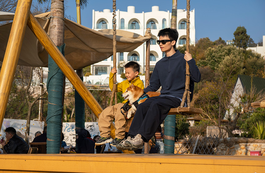 漫步小湾村,半日岛、目咖啡、树下咖啡等精品咖啡店依山而建,错落有致的观景台将抚仙湖碧波尽收眼底。简约温馨的装修、精心布置的打卡点,搭配云南小粒咖啡、创意特调饮品及精致甜品,勾勒出治愈人心的慢生活场景。市民游客或携家人围坐,或与好友相伴,品咖啡、赏日落、听音乐,在惬意中度过新春假期。