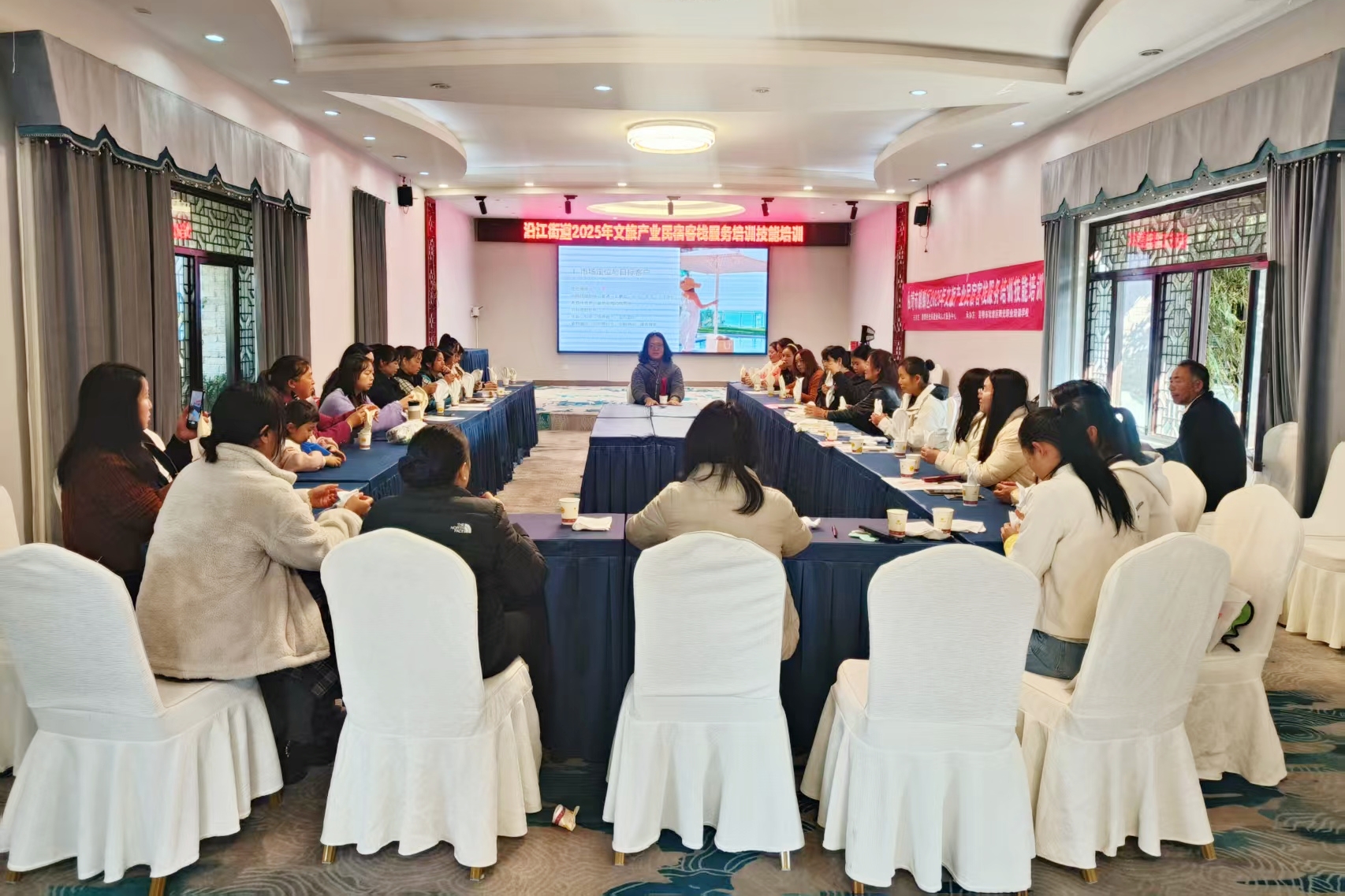 针对蓬勃发展的民宿产业,麒麟区精准对接产业需求,为大龙社区量身定制民宿服务技能培训班,全面提升村民服务水平与经营品质,助力群众稳岗就业。春节前夕,全区首个文旅产业民宿客栈服务技能培训班在大龙社区顺利开班,31名乡村民宿管家完成培训并取得技能证书,实现毕业即就业,就业率100%。