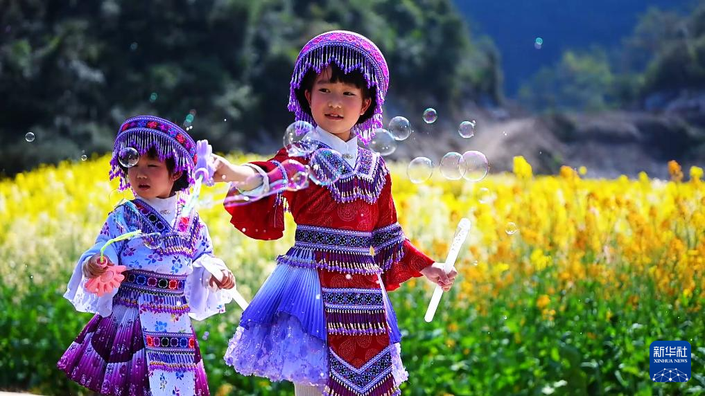 近日,在云南省文山州马关县夹寒箐镇上布高村,一片片多彩油菜花绚烂盛放。