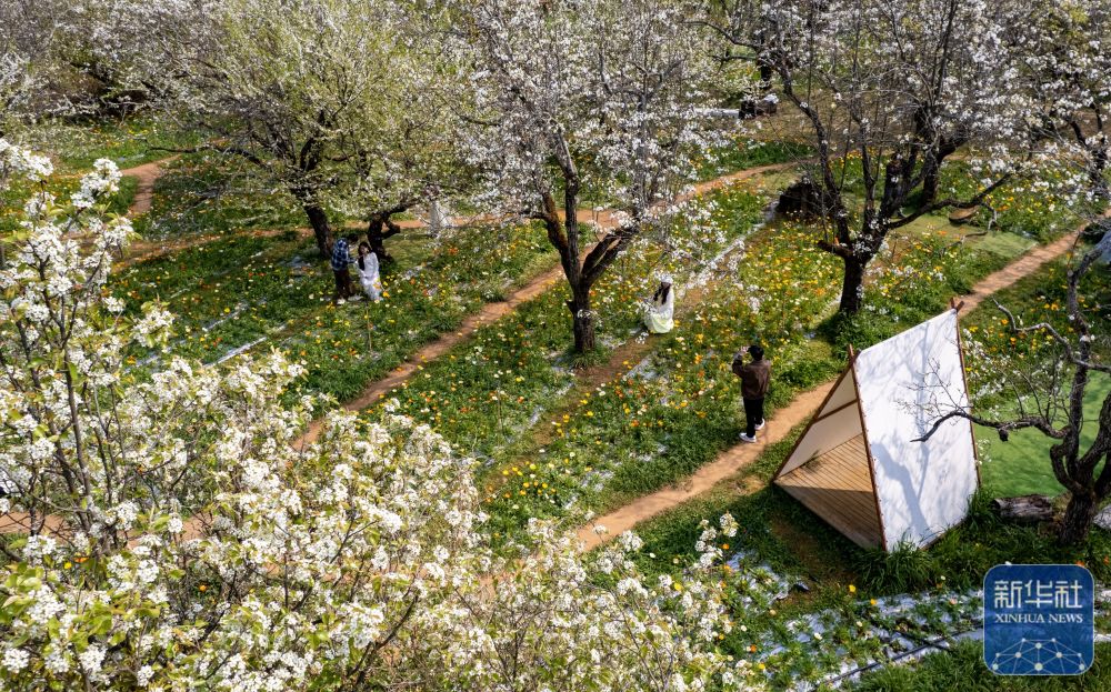 近日,云南昆明春光渐浓,繁花竞放,人们踏青赏花,感受盎然春意。