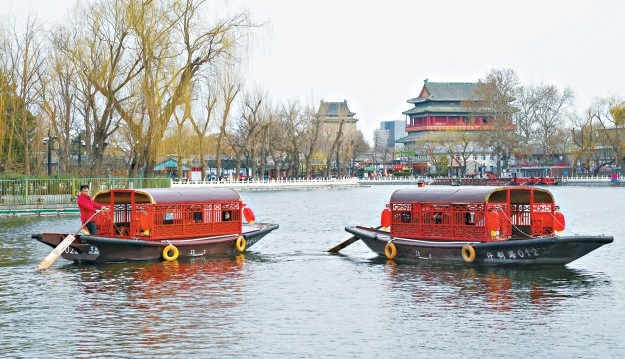 什刹海游船昨天(14日)开航,春日泛舟尽赏京城水韵。 本报记者 方非摄
