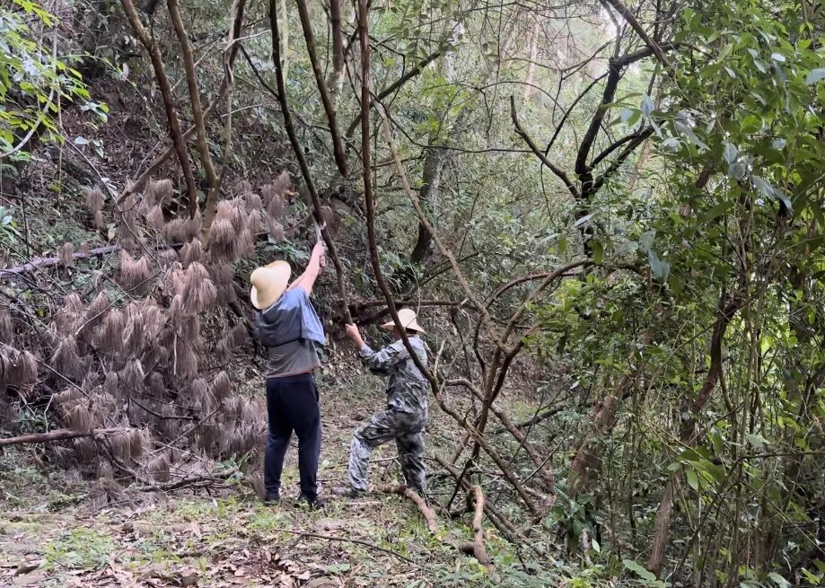 清理茶马古道上挡道的枯藤 县文物管理所(供图)