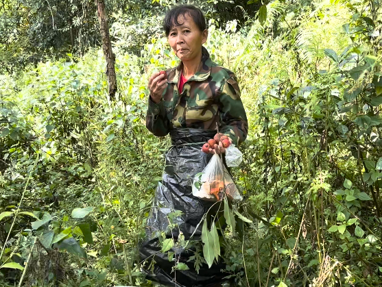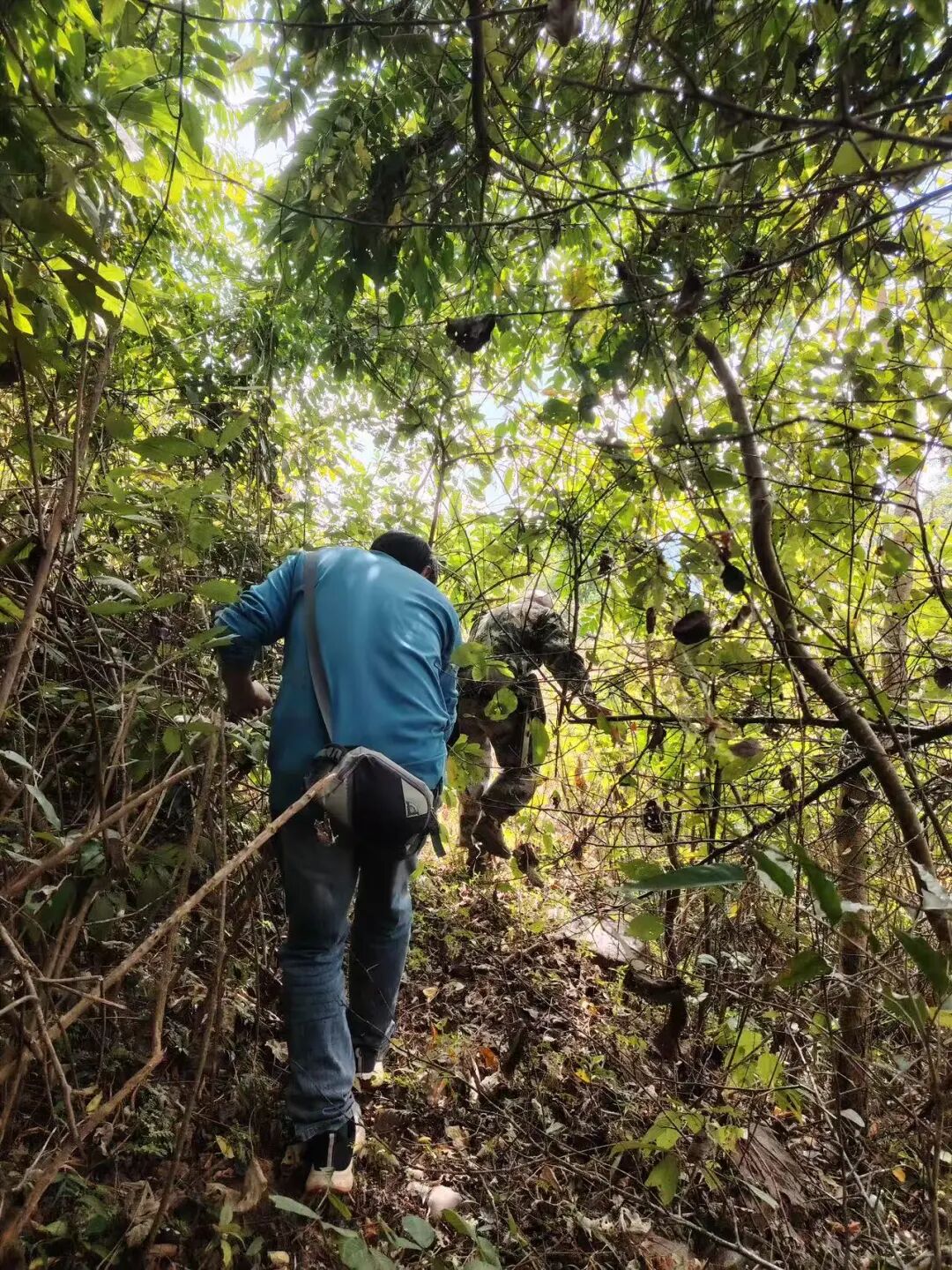 类似的故事几乎贯穿整个调查周期。庆明村孔雀屏小组的柴丽波,主动为调查组带路,从孔雀屏一路走到芭蕉林。冬日清晨,山间露重,她身披一块油布,始终走在队伍前头,8公里的山路走下来,她的裤腿和鞋子早已被露水浸透。