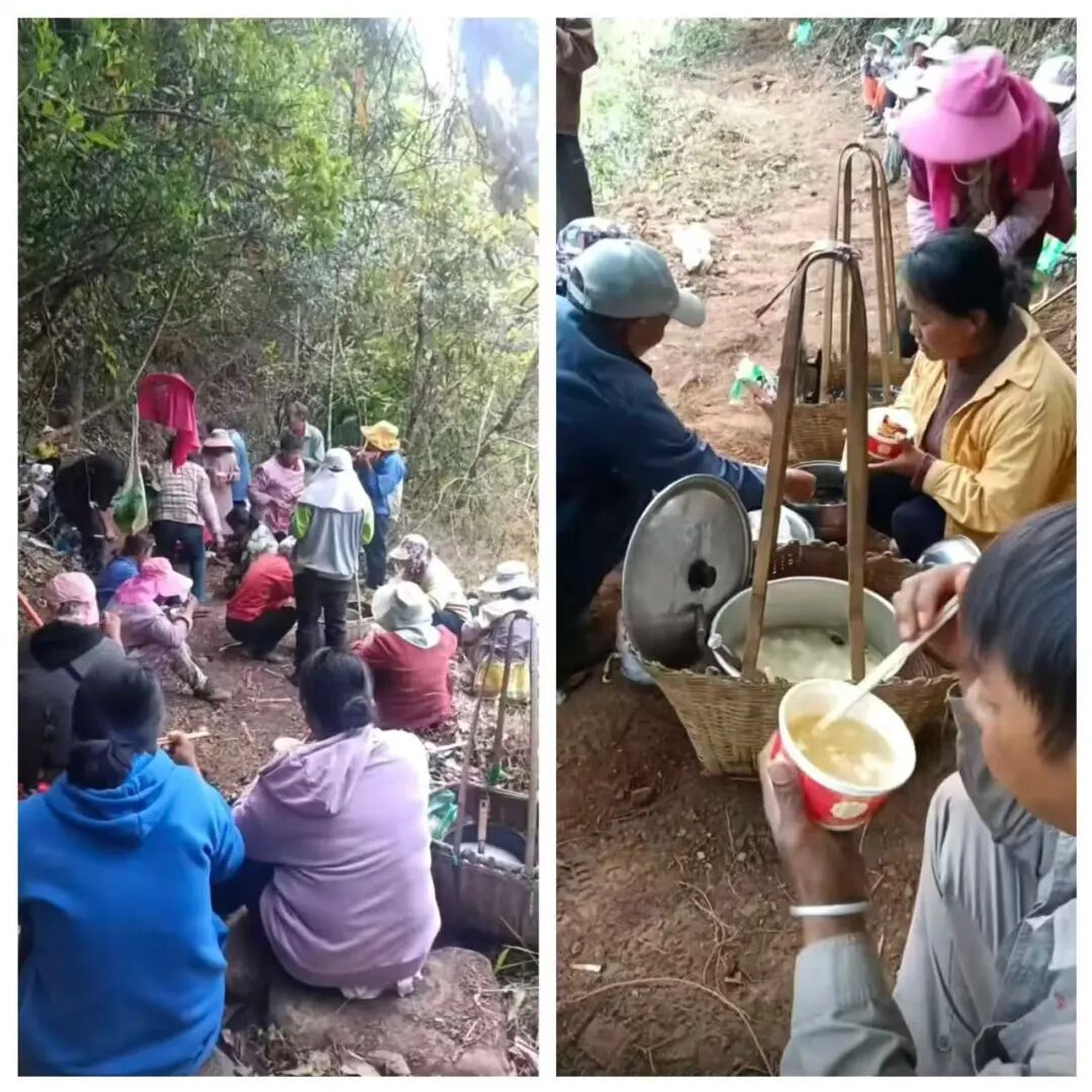 村民们在清理路上午餐 县文物管理所(供图)