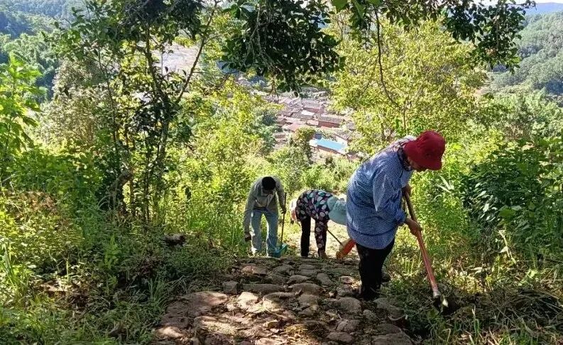 马美红组织村民开展茶马古道清理 县文物管理所(供图)