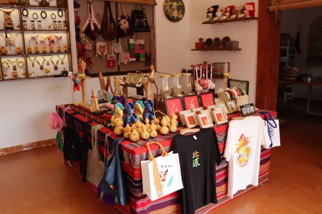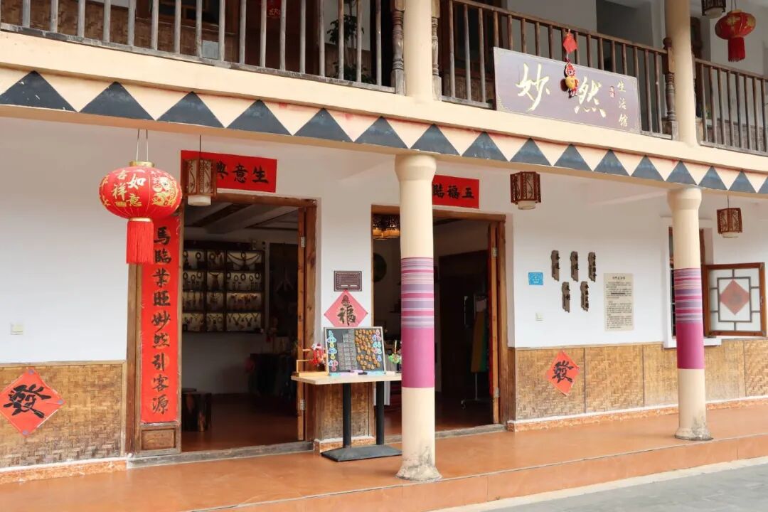 2025年1月,曹海军在沧源葫芦小镇找到了理想的落脚点——一栋融合干栏式传统建筑与现代设计的两层小楼,佤族先民的生活智慧与当代审美在这里无声对话,成为他逐梦的起点。他为小店取名“妙然生活馆”,寓意“妙然自得,随性生活”。从空间设计到细节布置,他全程亲力亲为,每一处角落都凝聚着巧思。工作室始终坚守原创本心,以匠心传承民族文化,让传统与现代、艺术与生活在此自然交融。