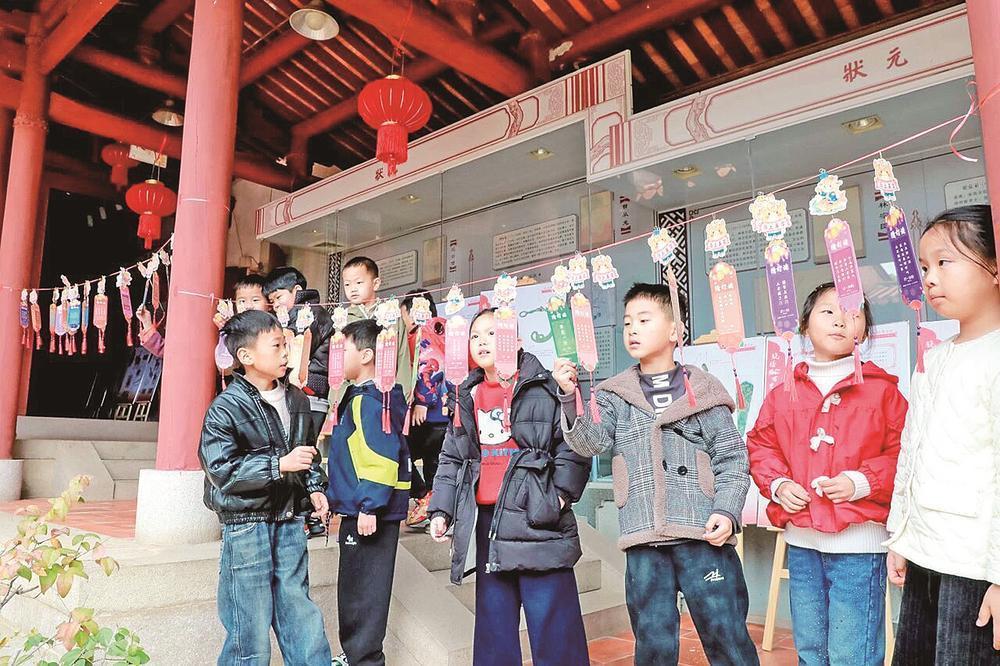 在晋江市龙泉书院,学生观看非遗表演、参与节俗体验,感受闽南文化的独特魅力。(资料图片)