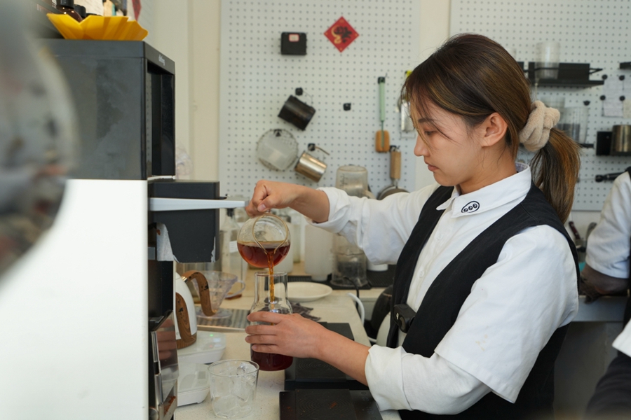 “这款手冲是我们的招牌‘血雀’,豆子是本地产的卡蒂姆,采用厌氧日晒处理,莓果调性突出,还能喝到一些红茶尾韵。”每端上一杯咖啡,李颖娟都会细致地向顾客介绍风味和口感。