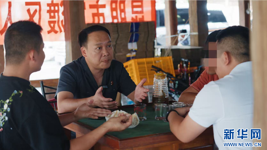 农忙时,磨憨法庭法官易君宇到村民家中开庭,最终促成双方调解结案(2025年9月19日摄)。新华网 赵普凡 摄