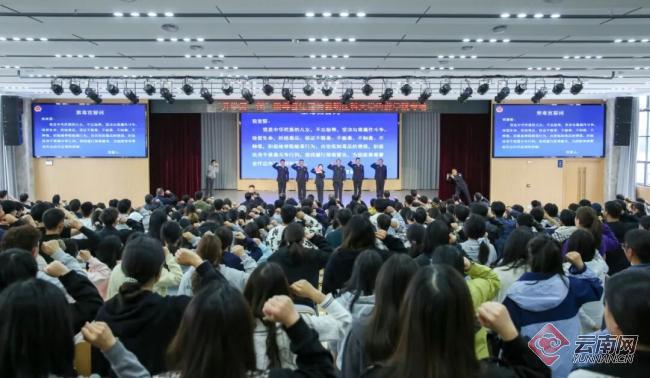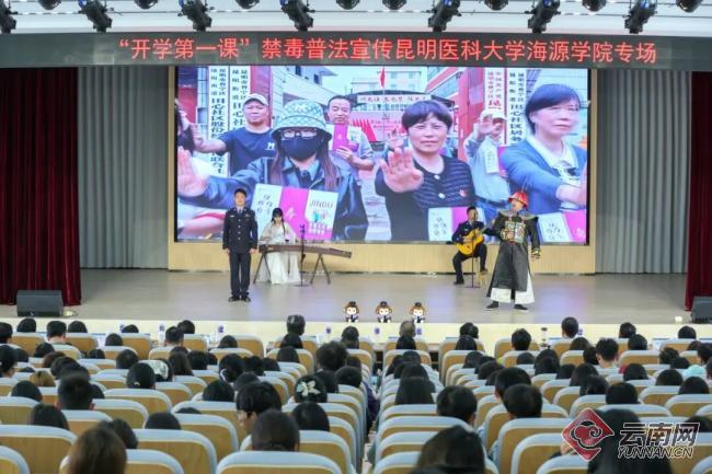 阳春三月,桃李竞芳,正是校园逐梦启航时;青春护航,法治同行,筑牢禁毒防线正当时。2026年春季学期开学伊始,昆明医科大学海源学院内暖意融融、氛围庄重,一场量身定制、兼具专业深度与青春活力的“开学禁毒第一课”正式开讲。云南省第一强制隔离戒毒所“如一”禁毒普法宣讲团走进校园,为千余名医学专业师生送上一堂思想性、专业性、感染力兼具的青春安全教育必修课,省司法厅、省教育厅、团省委及昆明医科大学海源学院相关负责同志出席本次活动。