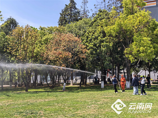 昆明主会场设在西南林业大学。消防指战员现场列装森林灭火主战装备与特种车辆,组织学生近距离观摩装备操作演示,并亲手体验水泵架设、风力灭火机使用等实操环节。搭配科普展板与互动闯关,让高校师生沉浸式学习防火知识与逃生技能。曲靖分会场聚焦城市“绿肺”寥廓山,宣传人员在进山路口设立宣传点,发放《森林防火倡议书》,讲解防火知识与违规用火法律责任,同步开展重点区域携装巡护,将防火提醒送到踏青市民身边。玉溪分会场联合当地林草、应急等部门开展真烟实火实战演练,无人机分队升空侦察、大载重无人机吊桶灭火,地面力量协同开展火情处置、余火清理,全程检验跨区域、跨部门联勤联动能力,为高火险期积累实战经验。