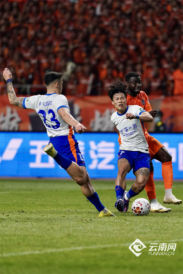 云南网讯(记者 龙彦 张成 陈思蒙)3月21日,2026年中超联赛再开赛局,云南玉昆主场迎战山东泰山,第三轮赛事在云南玉溪高原体育运动中心体育场打响。云南玉昆上半场“闪电战”3个进球领先山东泰山;下半场玉昆再进1球拉大比分,山东泰山无力反追。最终,云南玉昆4:0大胜泰山,赢得新赛季主场两连胜。