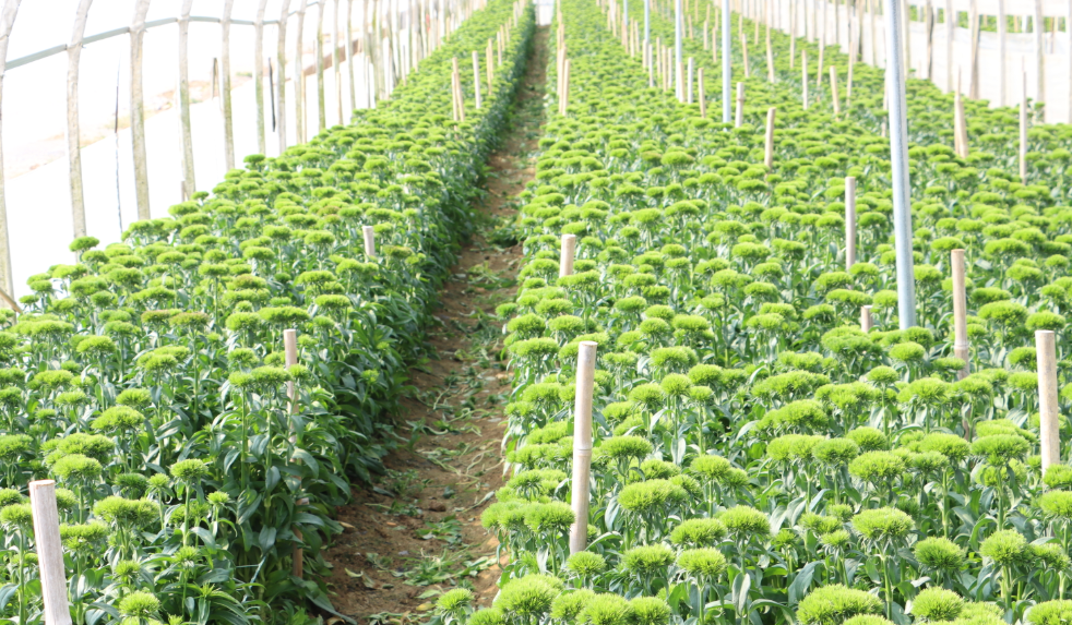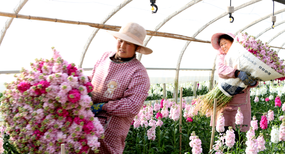 据基地负责人顾凯介绍,该种植基地流转租赁土地58亩,每年根据市场需求规模化种植洋牡丹、紫罗兰、绿毛球等花卉,采用“花卉+蔬菜”轮作模式,花卉采收后种植花菜等作物,充分利用土地肥力、提高土地利用率。