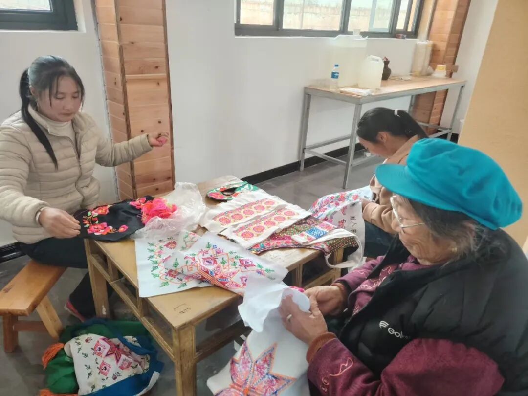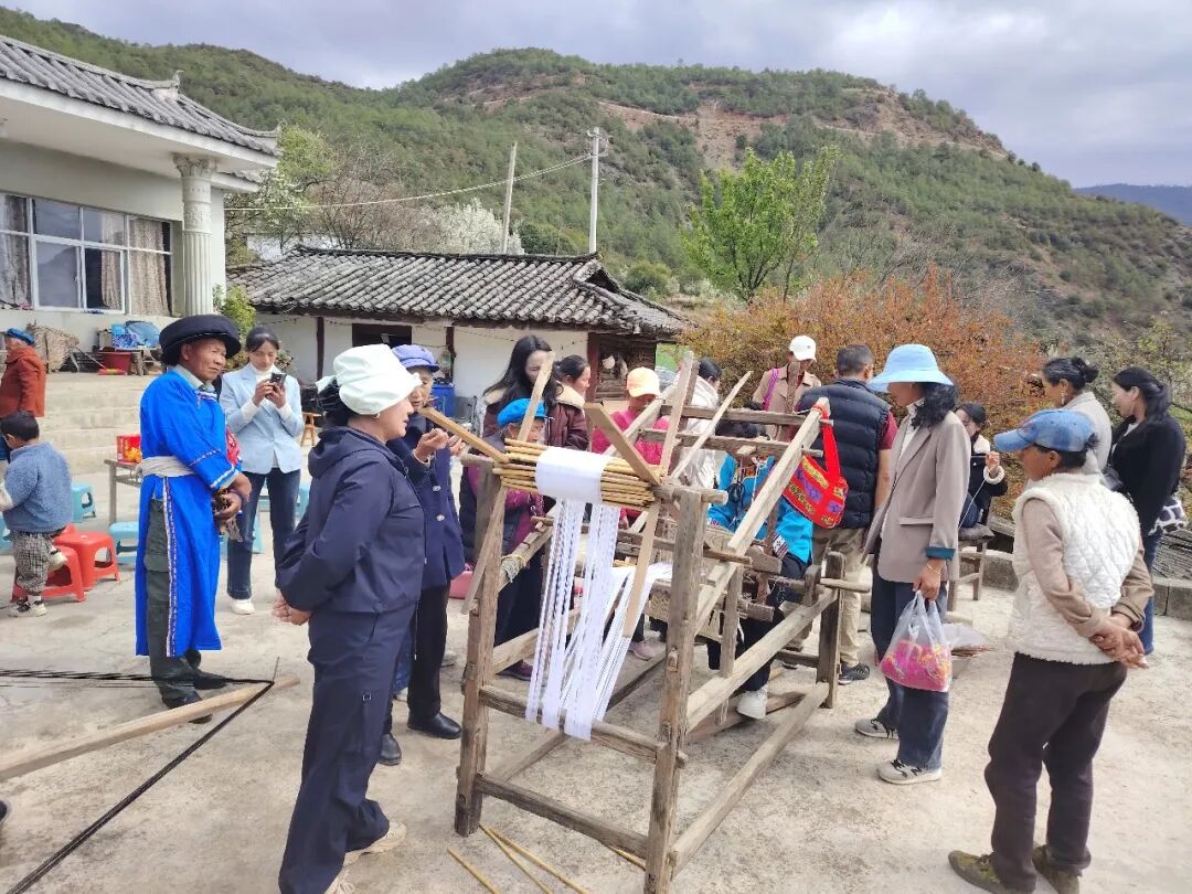 为增强培训实效,课堂还延伸至田野乡间。拈达则传承人前往黑尔甸村拈达山,开展面偶、版画实践交流,围绕封山仪式细节与面偶制作技巧进行深入切磋;传统技艺传承人则走进拉窝村苗族纺织技艺传承人工作坊,实地观摩纺线、织布及纹样设计全过程,在交流中激发灵感、弥补不足。
