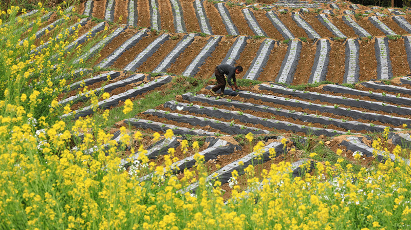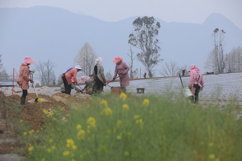 春满大地,云南保山腾冲市各地春耕生产热潮涌动,田间地头一派繁忙景象,人们以饱满的热情辛勤劳作,在希望的田野上播撒种子、耕耘希望。龚祖金 摄
