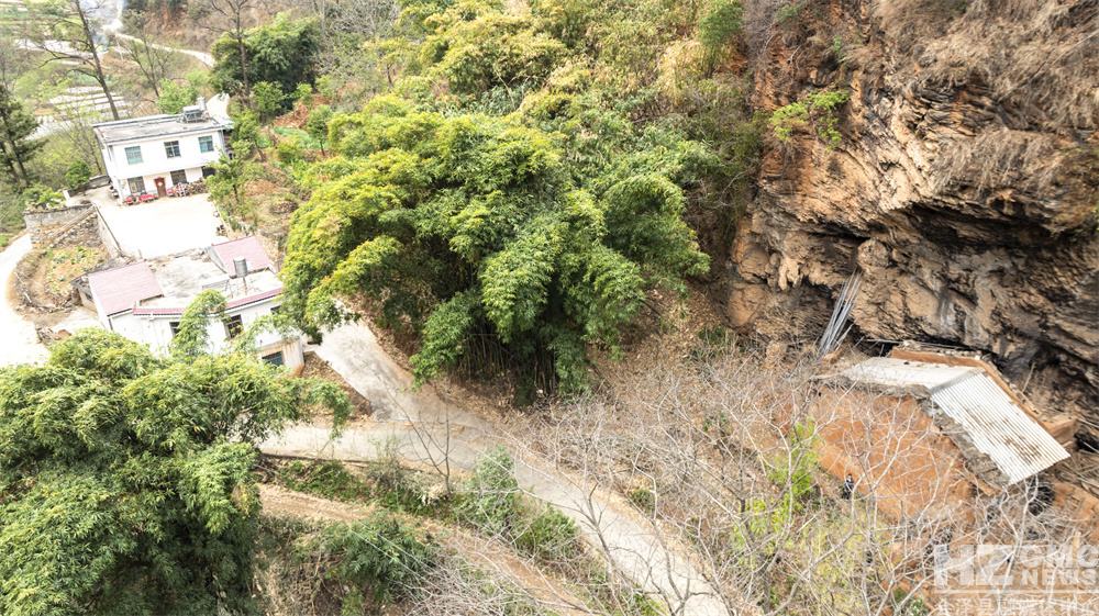 听闻此言,我们心中的期待更甚,沿着山间小路继续向岩洞村深处前行。山路蜿蜒,两旁竹林愈发茂密,翠绿的竹芽迎着春风冒出,竹影婆娑,阳光透过竹叶缝隙洒下,形成斑驳的光影。行不多时,几间土坯房在竹林掩映下若隐若现,土墙斑驳,屋顶覆着青苔,尽显岁月沧桑。
