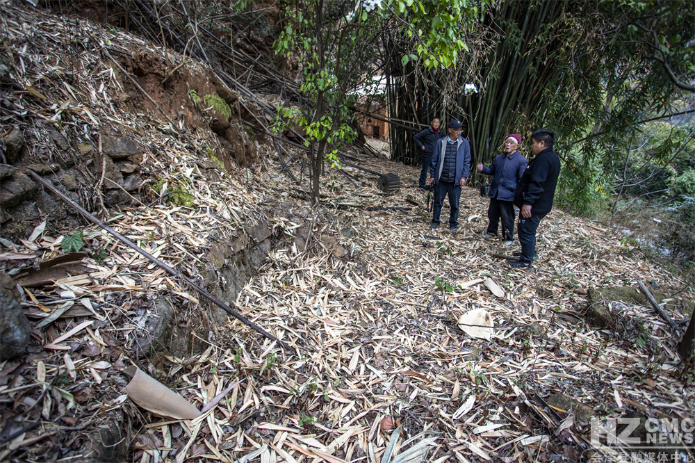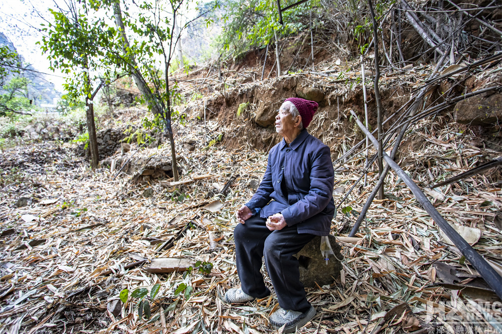 此时,一位老者手捏两个鸡蛋,从土屋中缓缓走出,正是毕福才老人。我们上前说明来意,询问造纸遗址的具体位置,老人听闻我们是来探访造纸历史,脸上瞬间露出欣喜的笑容,热情地说道:“我就是当年造过纸的人,老遗址就在上面的竹林下面,我带你们去!”