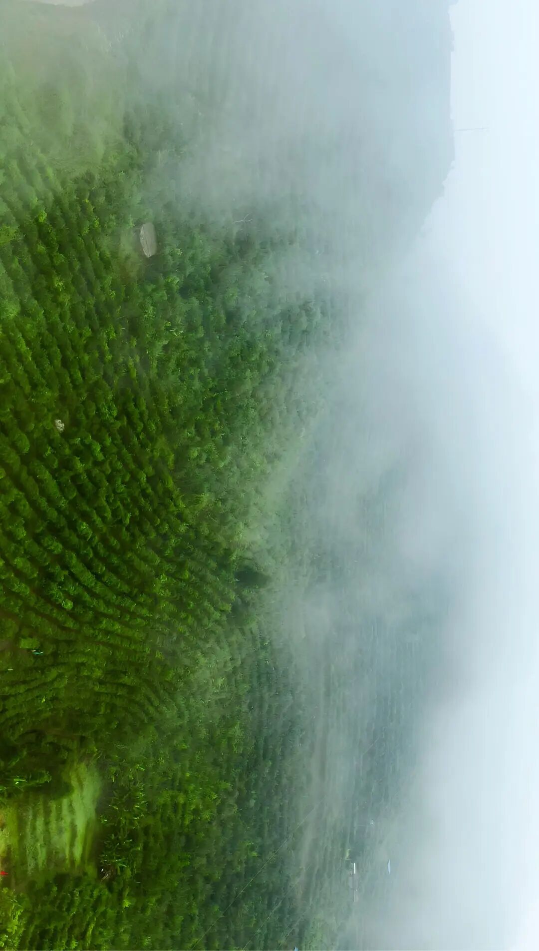 茶芽在云雾中舒展
