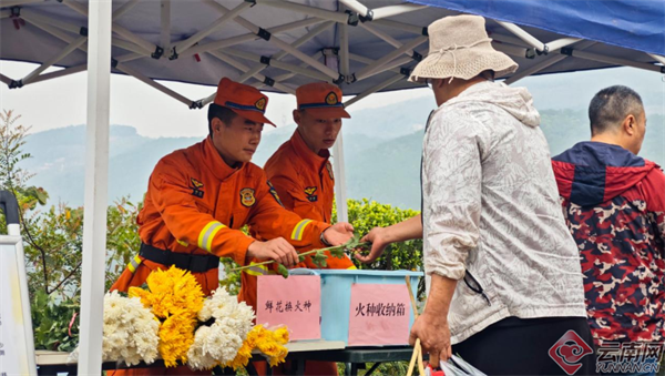 在普洱市思茅区,应急、林草、消防等部门联动,在多个公墓入口设立志愿服务点,持续开展“鲜花换火种、鲜花换祭品”活动。“鲜花换火种,一个火种换一朵鲜花,需要换吗?”消防员王宇豪的暖心问询,让不少群众主动放下纸钱、香烛等易燃祭品,换上鲜花寄托哀思。思茅消防救援机动大队指挥员李超介绍,这项活动已连续开展7年,效果较为明显,敬献鲜花、植树追思、踏青遥祭等绿色祭扫方式,正逐渐成为当地群众的新风尚。