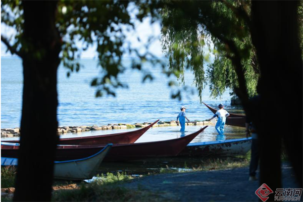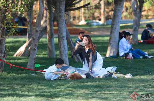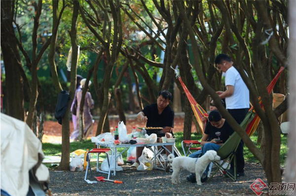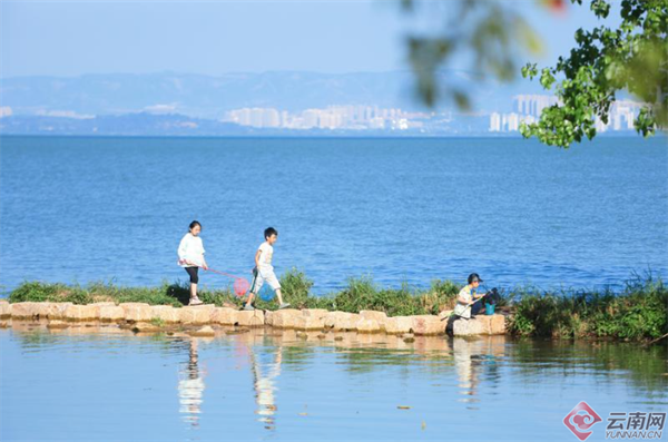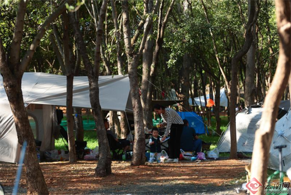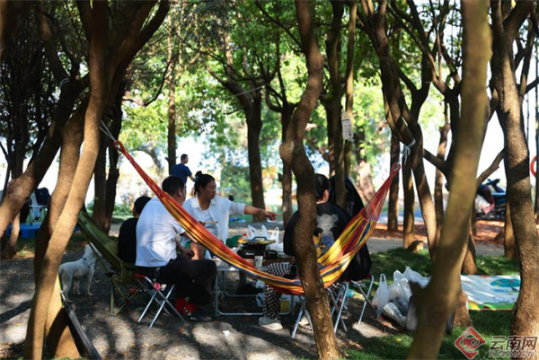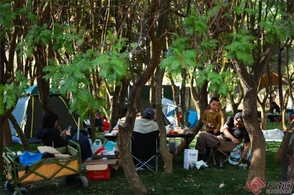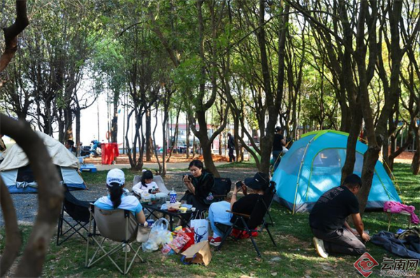 清明假日,昆明市西山区杨林港阿吒力咀湾迎来众多踏青市民。大家或支起帐篷露营,或卷起裤脚在露营地水边捞鱼,在湖光山色中尽情享受春日美好时光。
