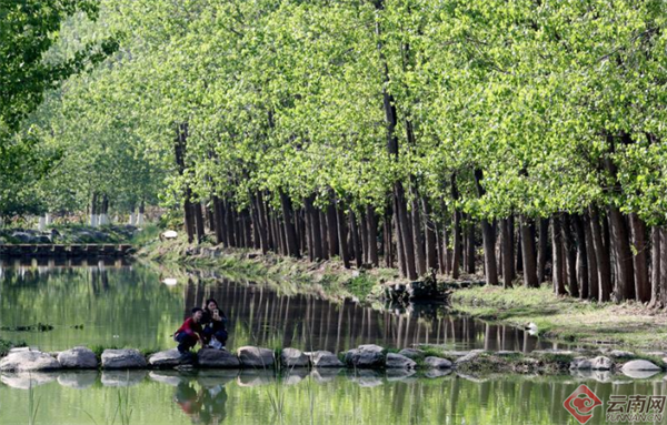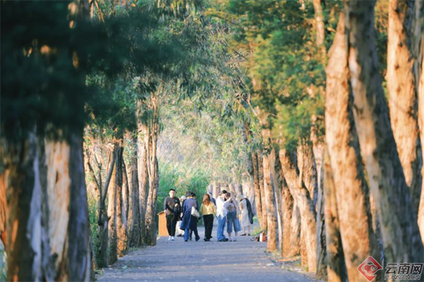 滇池绿道桦树林绿意盎然,美如画卷,成为市民踏青赏春的好去处。