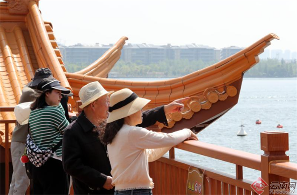 清明假日,市民游人在昆明滇池草海开合桥游览赏景。