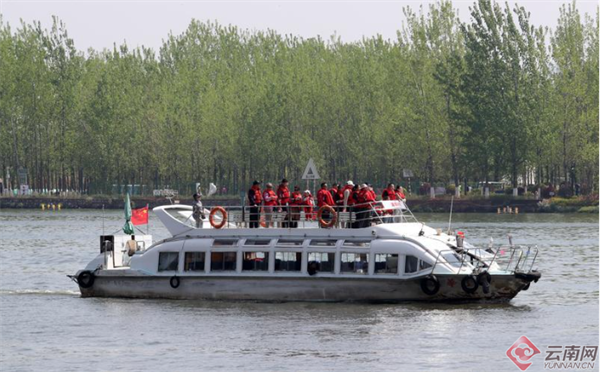 清明假日,游人乘游船观赏滇池春景。