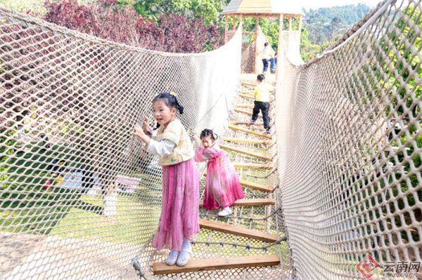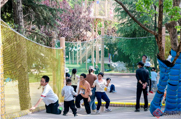 小朋友们正在“丛林飞翼”项目玩耍。胡妤雅 摄