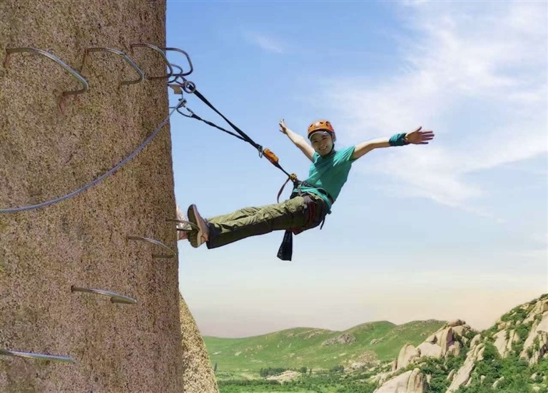 游客在嵖岈山体验飞拉达攀岩项目。本文配图均由受访者供图