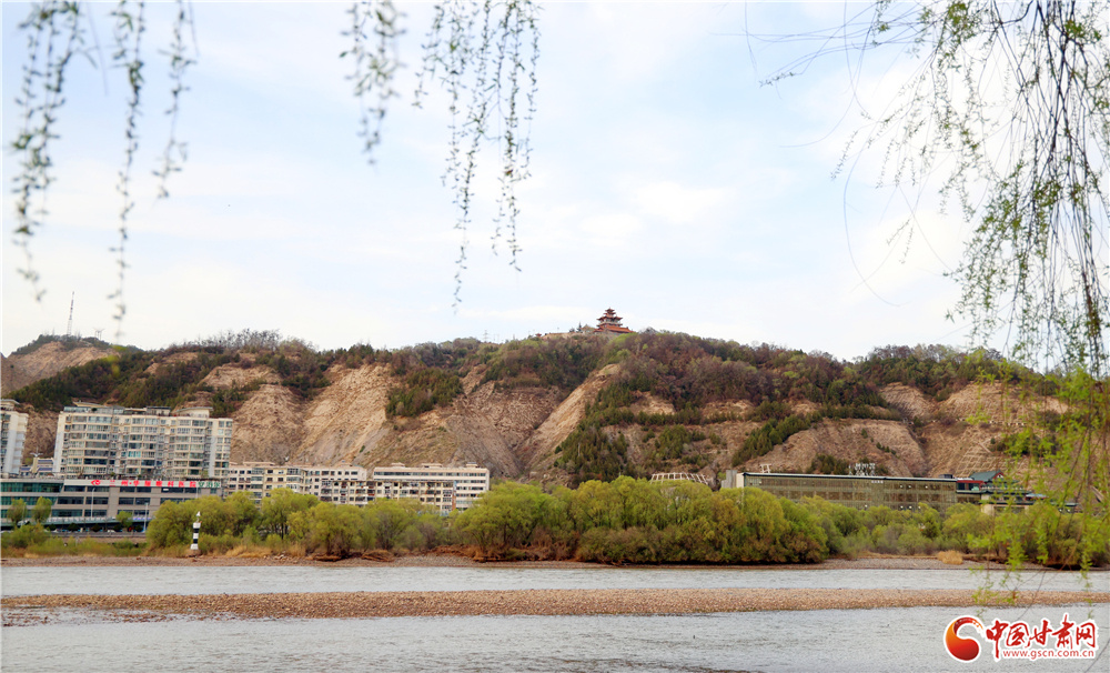 透过依依垂柳,远眺黄河对岸,北塔山巍峨耸立,与河畔柳林相映成画。黄河水滔滔东流,春日的金城山水相依、城景相融,尽显西北春日的雄浑与秀美,成为市民踏青赏景的绝佳视角。