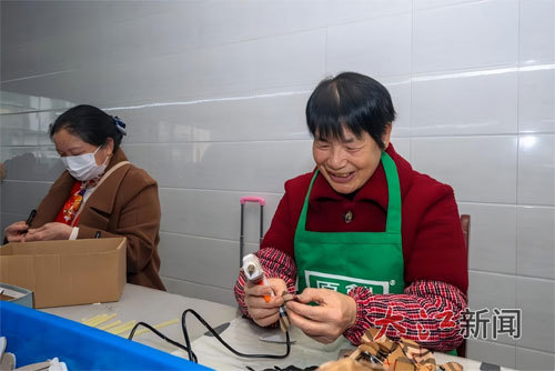 为破解群众就业与顾家两难的痛点,工坊精准施策,推行不打卡、来去自由的弹性工时。村民钟建南便是这一模式的直接受益者,他要接送孙辈、照料老人,时间和精力十分有限。入职工坊后,他根据家庭需求灵活安排上下班时间,既没有耽误照顾家人,每月还能增收2000余元,实现顾家、就业、增收三不误,日子也愈发安稳舒心。