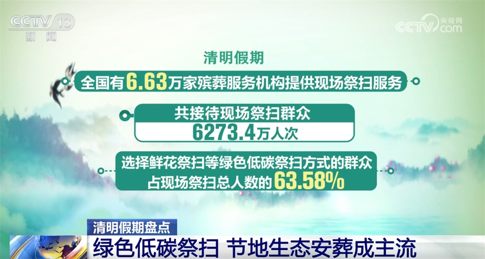 央视网消息:民政部统计,这个清明假期,选择绿色低碳祭扫、节地生态安葬成为主流。