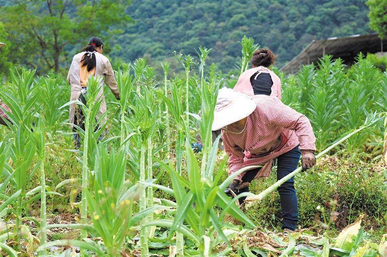贡菜产业的蓬勃发展,为九龙街道辖区群众提供了在“家门口”就业增收的机会。九龙街道控嘎村委会大树坡村村民张梅青高兴地说:“我在贡菜种植基地务工,一年能挣3万多块钱。基地就在我家附近,照顾家里的老人和孩子很方便。”罗平亨丰农业有限责任公司工人李红仙也感慨道:“公司让我在‘家门口’就有活儿干,一天能挣100块钱,我很满意。”