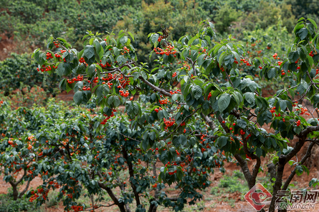 据介绍,七甸街道目前共有松茂、马郎、野竹、水塘四个社区的樱桃主产区,种植品种包括红灯笼、尖嘴、马奶、金线、玛瑙红、大樱桃等,种植农户达2000余户,辖区樱桃种植面积1.2万亩,总产值超亿元。已举办十六届的樱桃节活动,每年吸引游客3万至4万人次,有效带动当地农户增收,樱桃已成为当地群众的“致富果”。