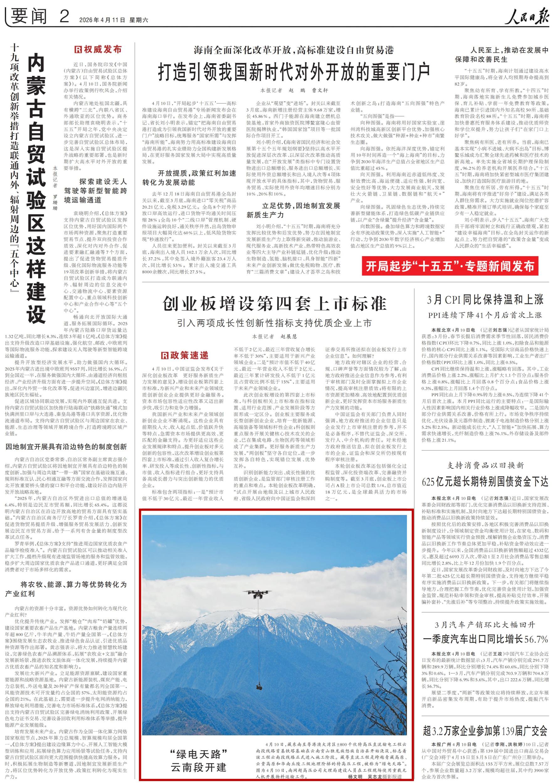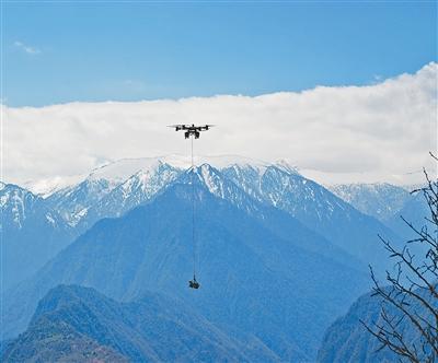 4月10日,藏东南至粤港澳大湾区±800千伏特高压直流输电工程云南段线路首基铁塔基础在云南贡山独龙族怒族自治县开始浇筑,标志着该工程云南段线路正式进入施工阶段。藏粤直流工程是跨越青藏高原、云贵高原和华南丘陵三级地理阶梯的特高压工程,被称为“绿电天路”。图为4月10日,南网超高压公司大理局建设人员在工程现场使用重载无人机开展物料运输工作。(杨文明 吴志龙)