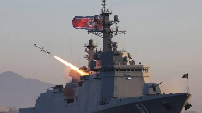 朝鲜“崔贤”号驱逐舰进行武器系统试验